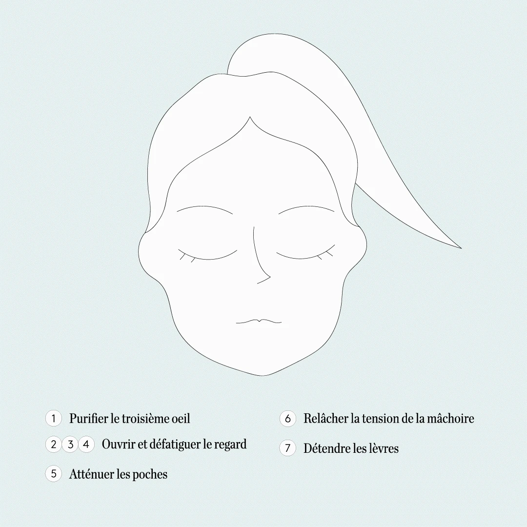 Un accessoire qui utilise la technique des points d’acupression pour aider à dénouer les tensions des muscles faciaux pour une peau relaxée et des ridules moins marquées.